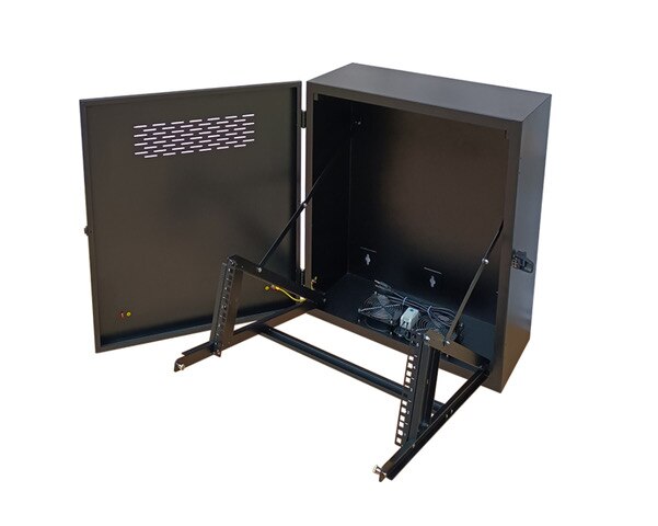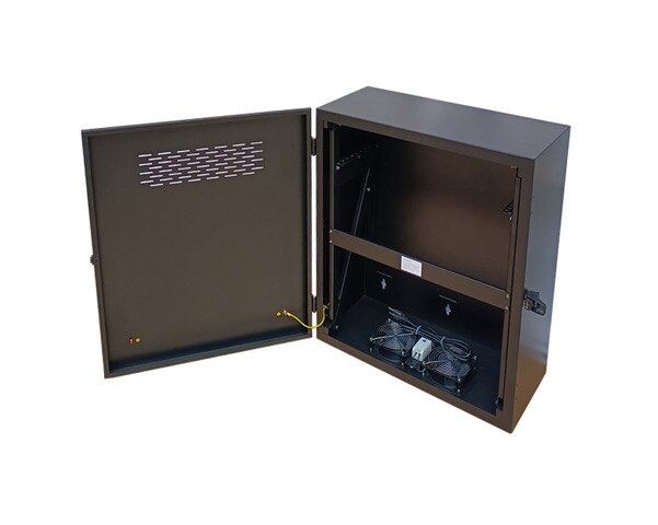 LightSaber 5U Vertical Wall Mount Rack Enclosure with 2pcs AC110V cooling fans(with temp.controller), 20 Inch Switch Depth, RAL9005 Black color