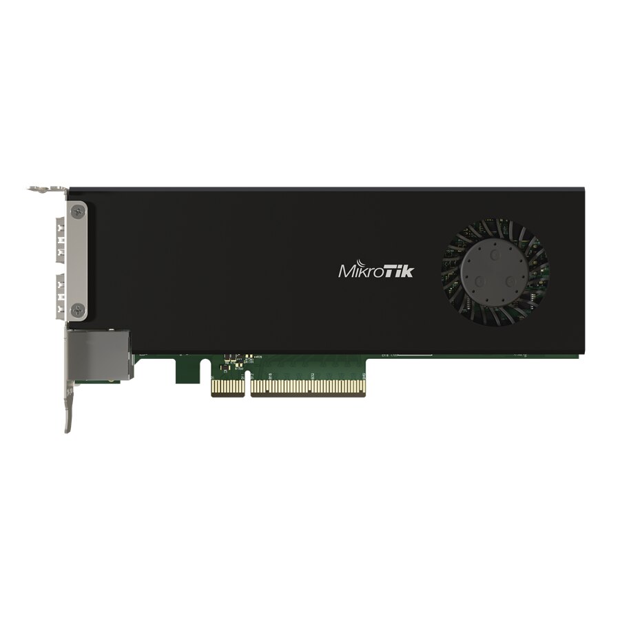 The MikroTik smart PCIe network interface card, a remarkable product that seamlessly combines the functionality of a fully-fledged router with a two 25 Gigabit PCIe Ethernet adapter. This unique card allows you to create 25 Gigabit networks, making it an ideal space-saving solution for your server room.