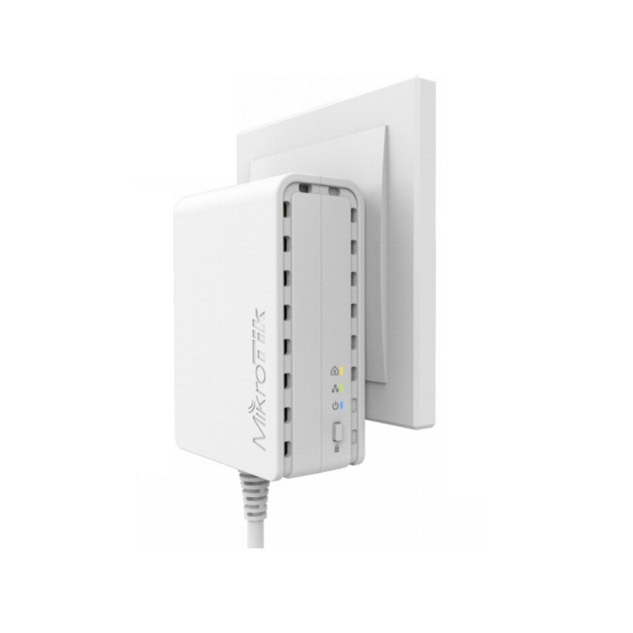 ISP Supplies supplies the MikroTik PL6400 PWR-Line power adapter with type A power plug (commonly used in USA, Canada, Mexico, Thailand) designed for MikroTik products with microUSB port, like hAP mini or hAP lite. Connect PL6400 to your electrical outlet and then connect the USB cable to power your supported MikroTik device. When doing the same with another PWR-LINE compatible device somewhere further in your premises, the devices will form a connection without needing to install any LAN cables.