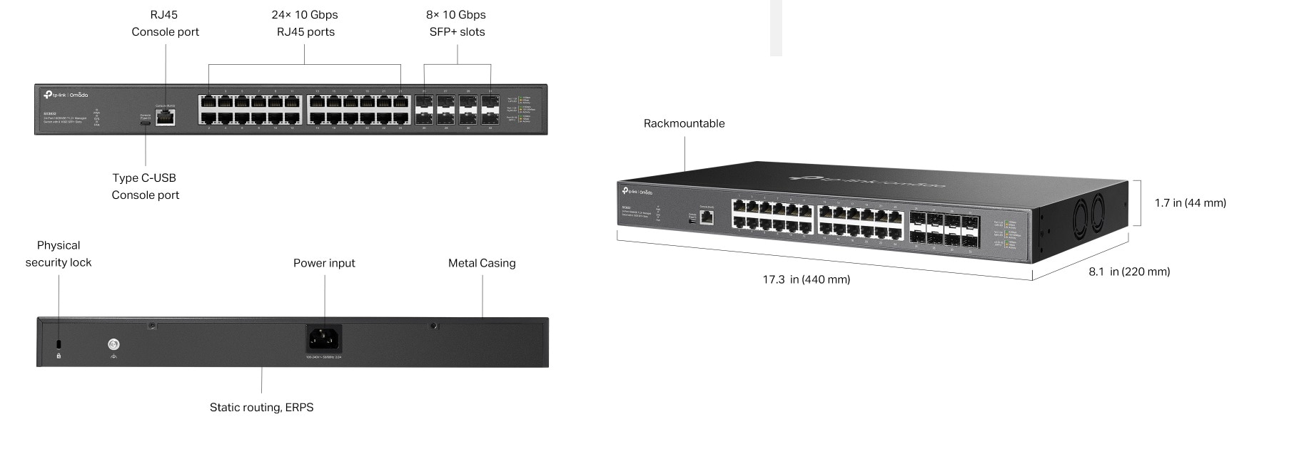 Omada 24-Port 10GBASE-T L2+ Managed Switch with 8 10GE SFP+ Slots