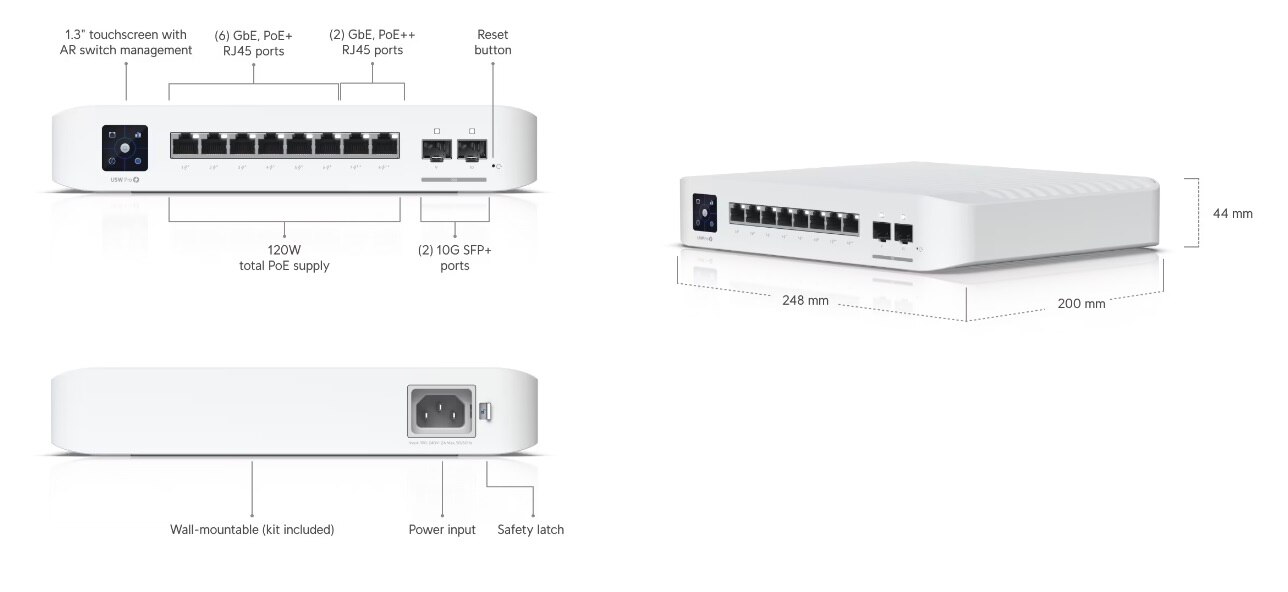 - Managed switch, management via UniFi Network Controller