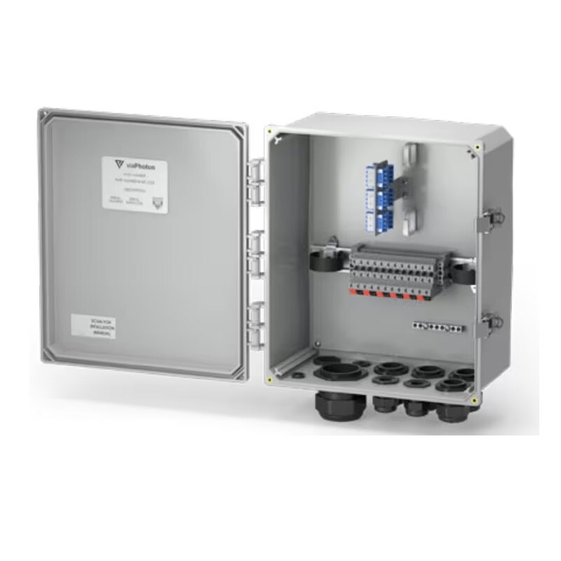 Outdoor Hybrid Enclosure, 24 Fibers, 10 Power Circuits, No Tray, NO SPD, Gland Pattern 4